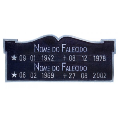 Contendo: Placa dupla sem foto, com friso trabalhado simples e detalhes nos cantos superiores, data corrida.