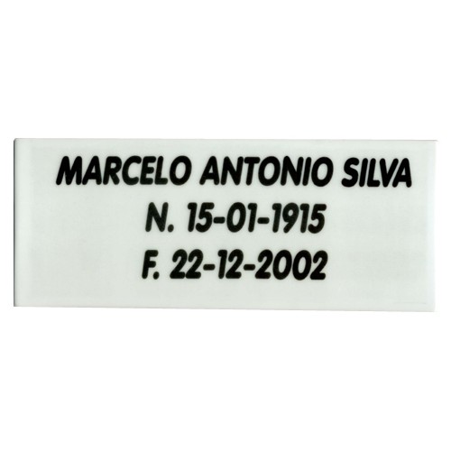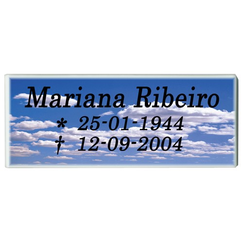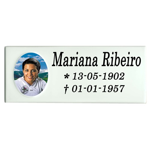 As placas retangulares confeccionadas pela Foto Porcelana Monte Alto são encontradas na medida de 10 X 25 cm e podem ser lisas ou com relevo oval.